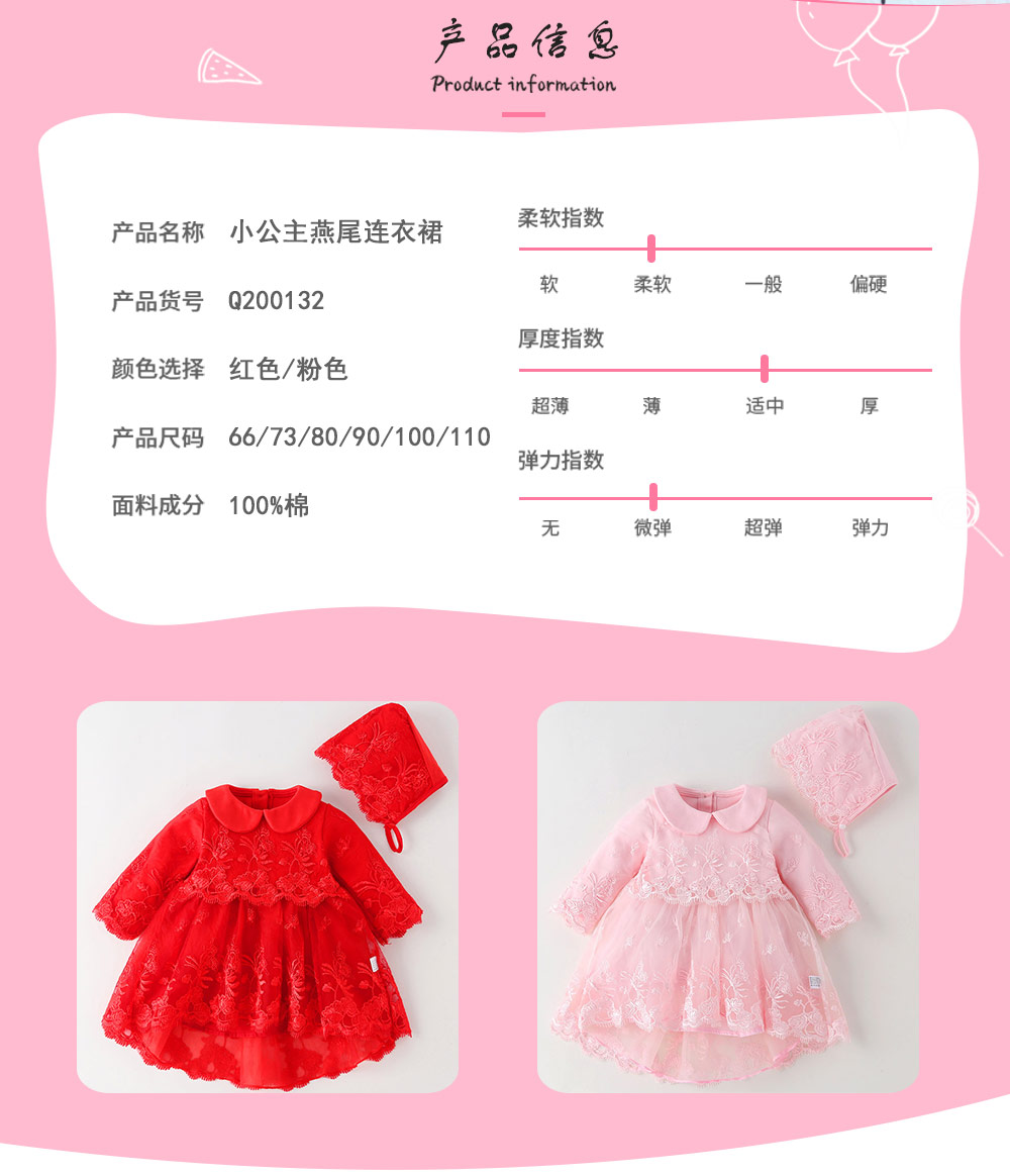 时尚可爱的女宝连衣裙来啦!专为小公主们设计,选用95%优质棉料,柔软舒适,透气性极佳,给宝宝全方位的呵护。A字裙摆搭配精美褶皱,尽显甜美气息,非常适合春秋夏季穿着。适合0~1岁的小宝贝,安全等级A类, 确保您的安心选择。萌妈蓓品牌,专注每个细节,让宝宝穿出时尚和优雅!让你的公主在夏日闪耀,舒适棉质百日照裙,快来选购吧!联系13727350887有线下拿货扶持