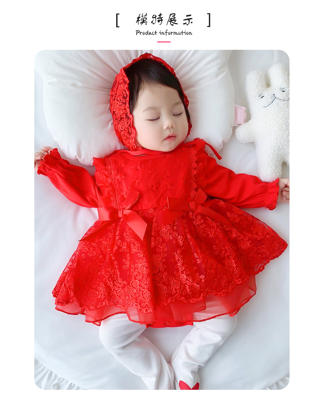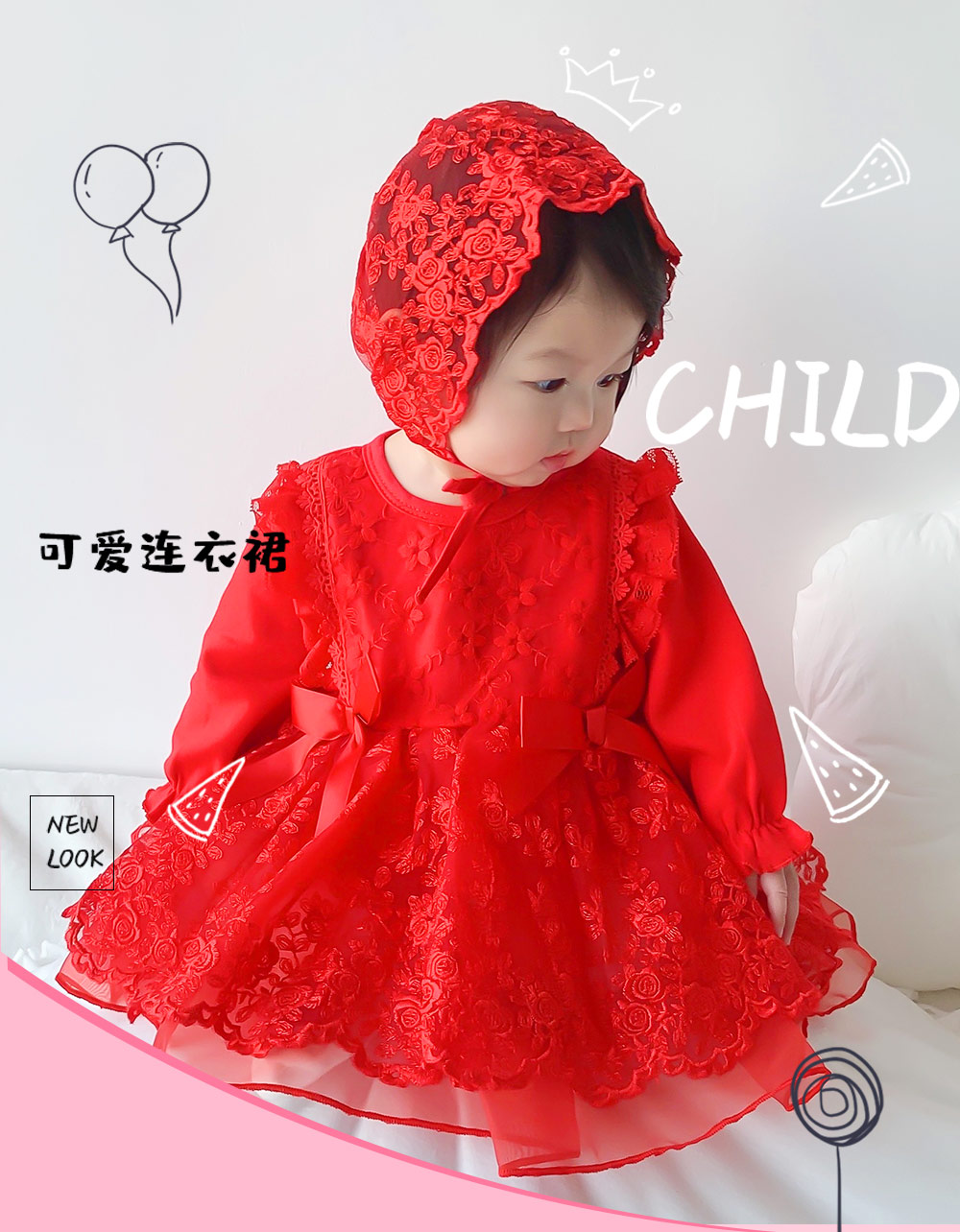 宝妈们疯狂心动的红色蕾丝裙来咯!浓郁正红色,喜庆又吸睛,蕾丝花纹精致,满满高级感。大蝴蝶结装饰灵动俏皮,长袖设计贴心保暖。搭配同材质蕾丝小帽,可爱翻倍。联系13727350887有线下拿货扶持