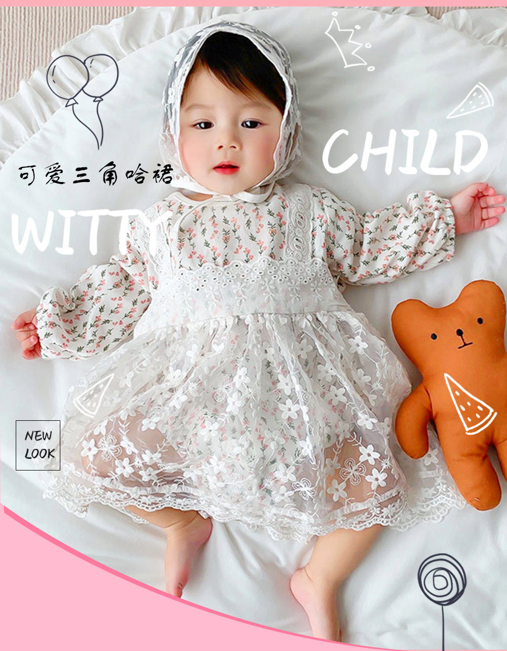 萌娃春日穿搭王炸!蕾丝钩花+碎花小裙,网纱裙摆蓬蓬的,穿去踏青,被追着问链接的可爱~联系13727350887有线下拿货扶持