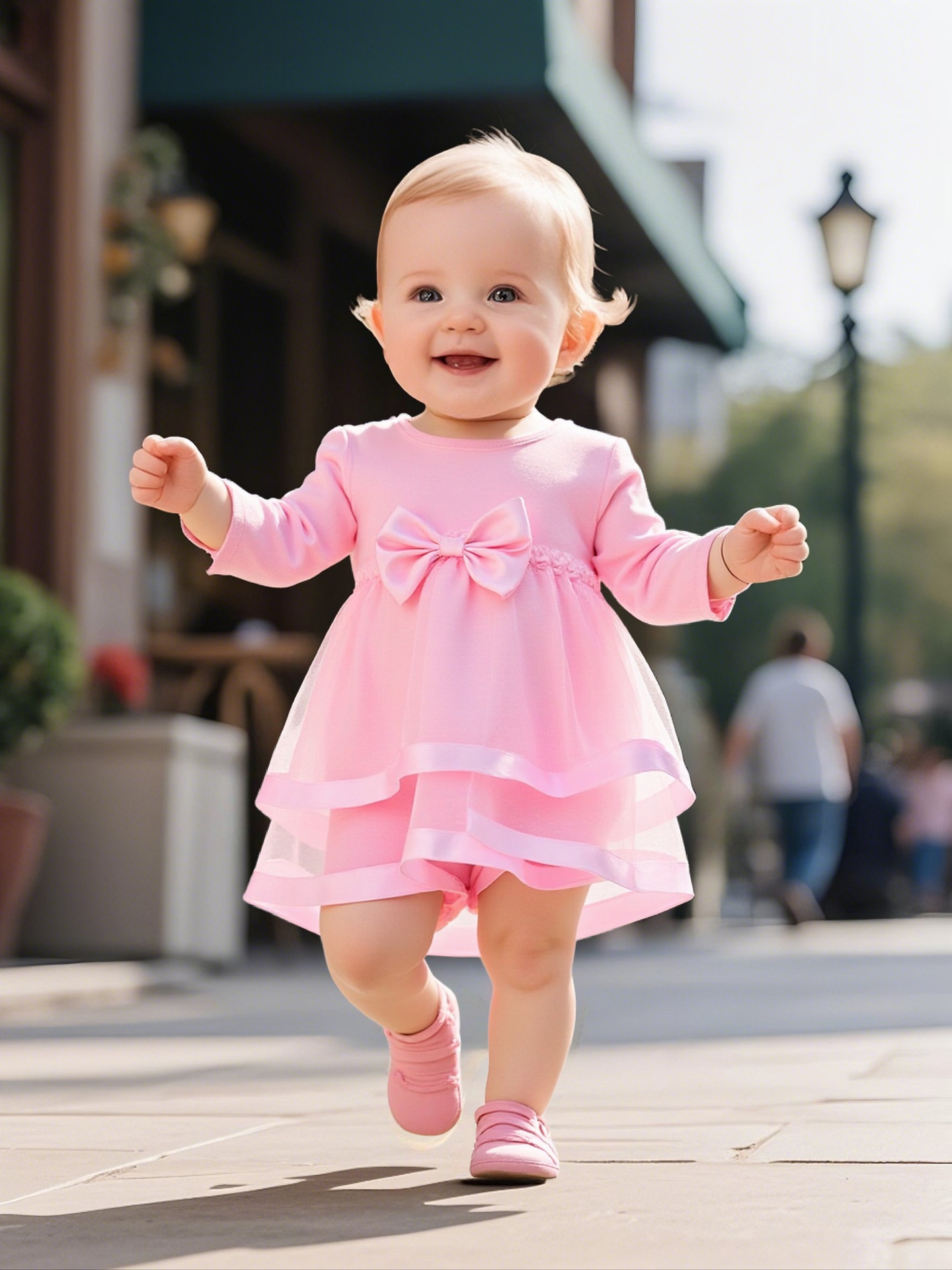 这款婴儿连衣裙走公主风,裙摆设计有层次感 ,上有精致蝴蝶结装饰。衣服面料以棉为主,含棉量达95%,安全等级为A类,适合不同月龄宝宝穿着,从3个月到2岁都有合适尺码可选。