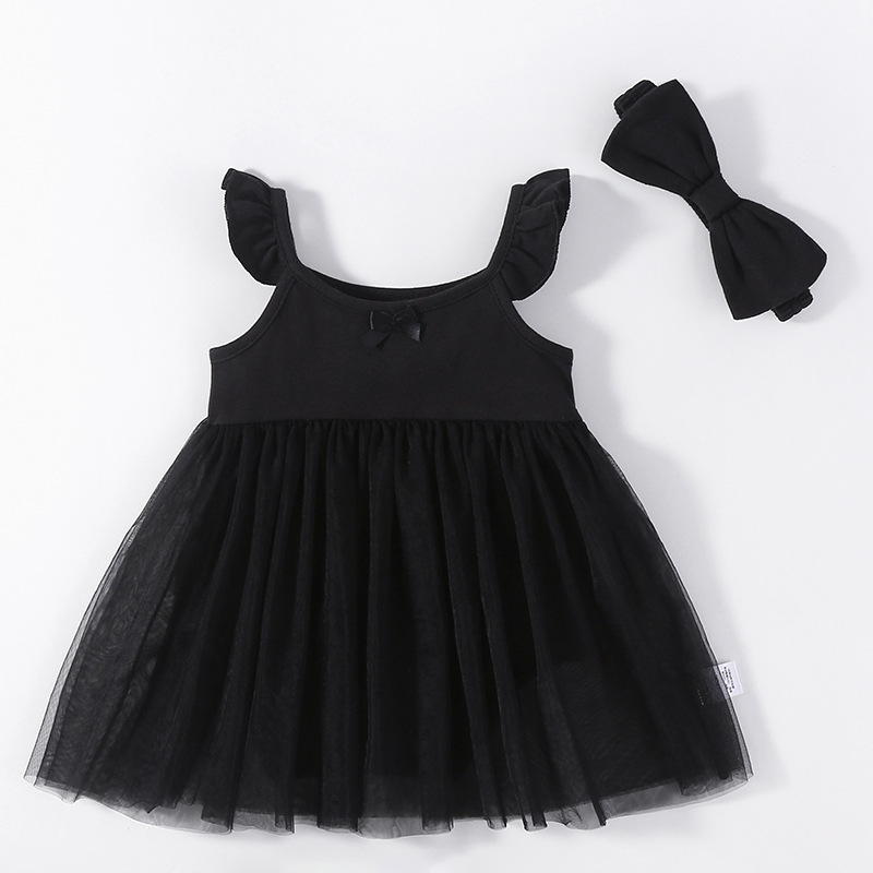 这款公主裙太有范儿啦!经典黑色,神秘又时尚。肩带荷叶边设计,俏皮可爱,小蝴蝶结点缀,精致感满满。网纱裙摆蓬松轻盈,走动间灵动飘逸。 咱这裙子面料超赞,舒适亲肤、透气环保,柔软细腻不扎宝宝。还搭配同色蝴蝶结发带,时尚度拉满。无论是晚宴、表演,还是日常出街,宝宝穿上都气场十足。我们是源头厂家,支持定制,量大价优,款式和颜色任选。品质有保障,供货稳定。
