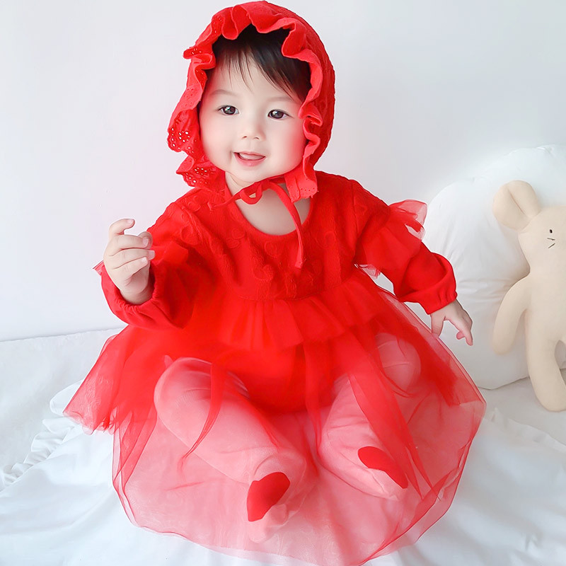 这款红色连体纱裙太亮眼啦!咱是源头实力厂家,品质有保障。大红色喜庆又吸睛,长袖设计搭配精致蕾丝帽,帽檐花边灵动。 网纱裙摆轻盈飘逸,增添梦幻感。面料亲肤柔软,透气不闷热,宝宝穿着舒适自在。按扣设计方便穿脱,换尿布轻松。无论是节日庆祝、拍照留念,还是日常出街,宝宝穿上就是焦点。供货稳定,量大价优。