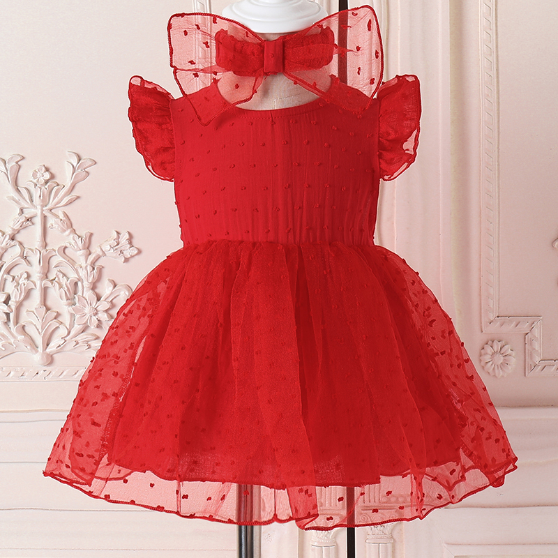 童装店主们,快来抢爆款!这款红色公主裙太吸睛啦!浓郁正红色,超显宝宝肤色。泡泡袖俏皮可爱,甜美感拉满。蓬蓬网纱裙摆轻盈灵动,走路都自带梦幻氛围。