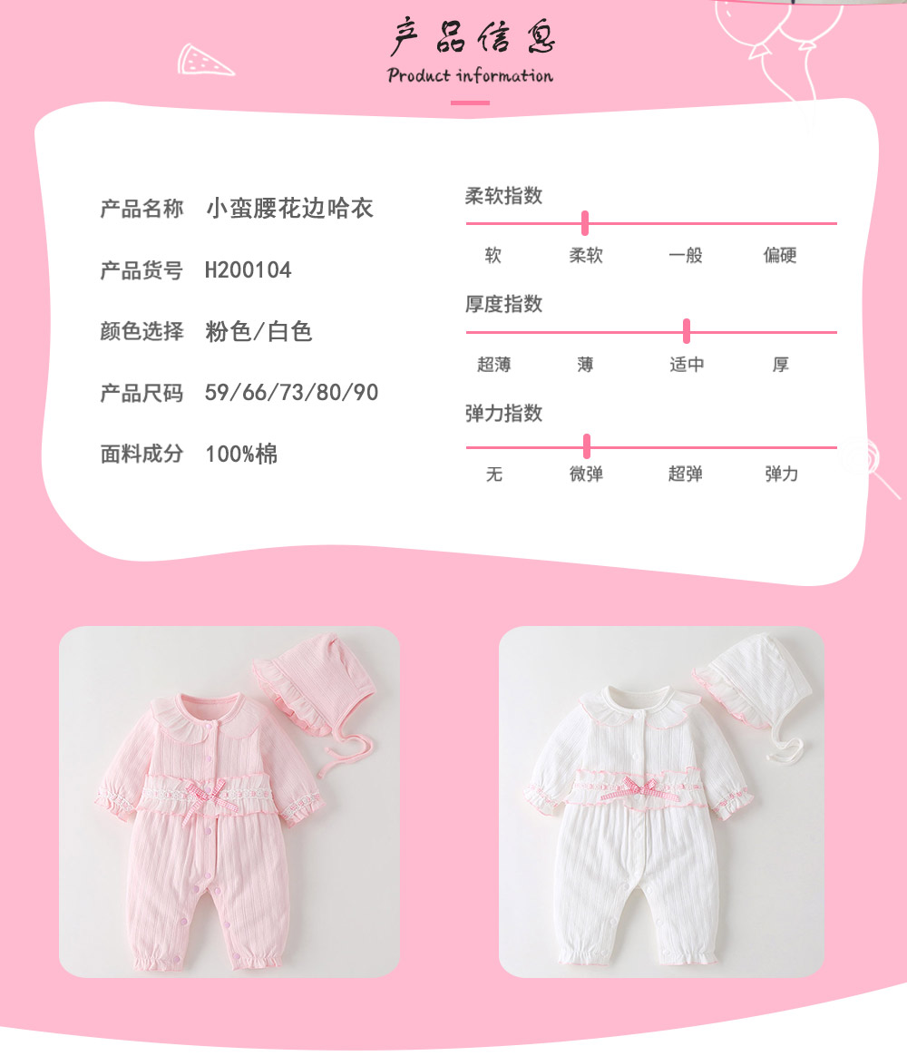 品牌:萌妈蓓 面料名称:棉 安全等级:A类 主面料成分:棉 主面料成分含量:100 适用性别:女 货源类别:现货 货号:H200104 颜色:白色 粉色
