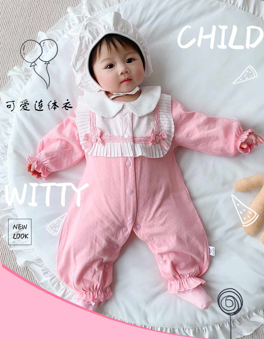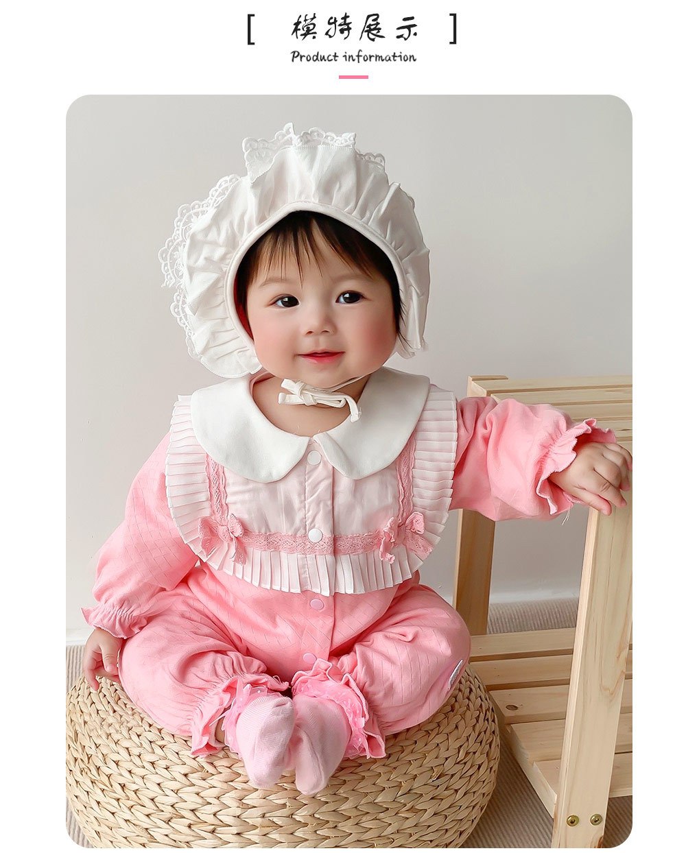 浅粉小哈衣配蕾丝帽,可爱藏在领口花边,穿它的宝宝,是春日里的小甜崽✨