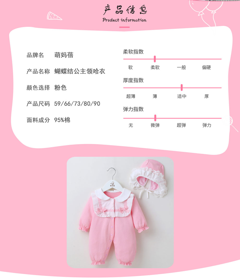 品牌:萌妈蓓 面料名称:棉 安全等级:A类 主面料成分:棉 主面料成分含量:100 适用性别:女 货源类别:现货 货号:H2020725 颜色:粉色 款式:长爬