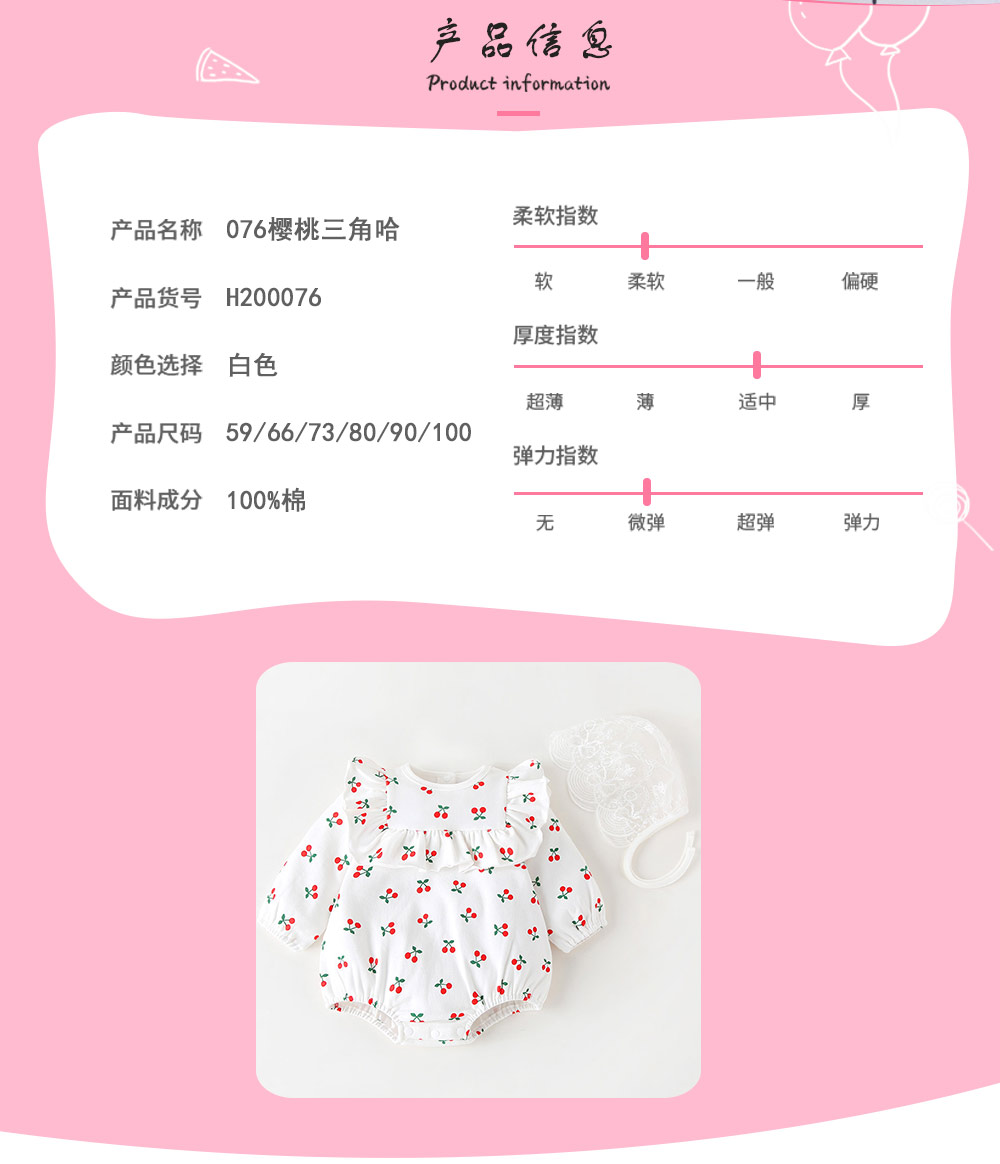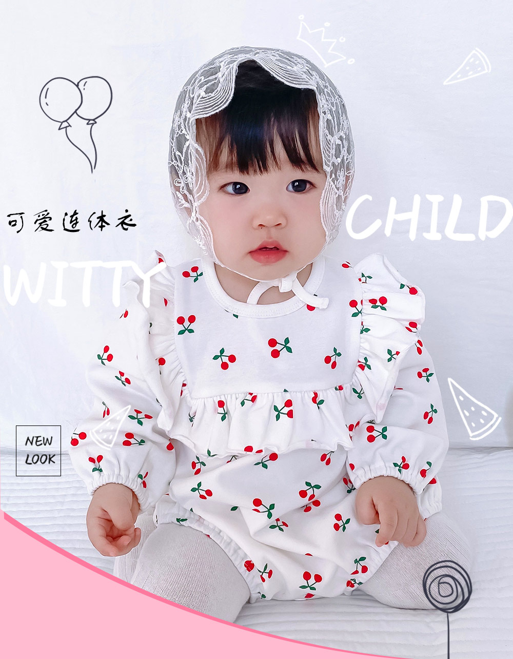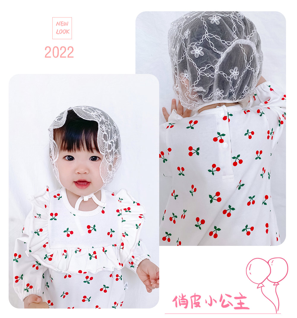 满印樱桃+蕾丝小帽,清新又软萌,穿它的小宝贝,像从童话里蹦出来✨