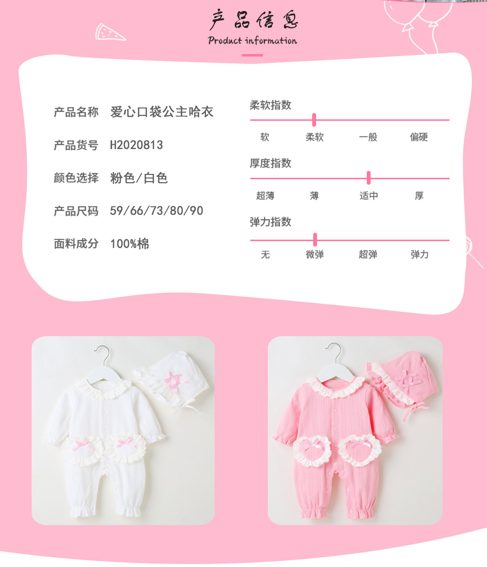 粉粉嫩嫩小连体衣,爱心装饰超甜腻,给宝贝云朵般的柔软拥抱~