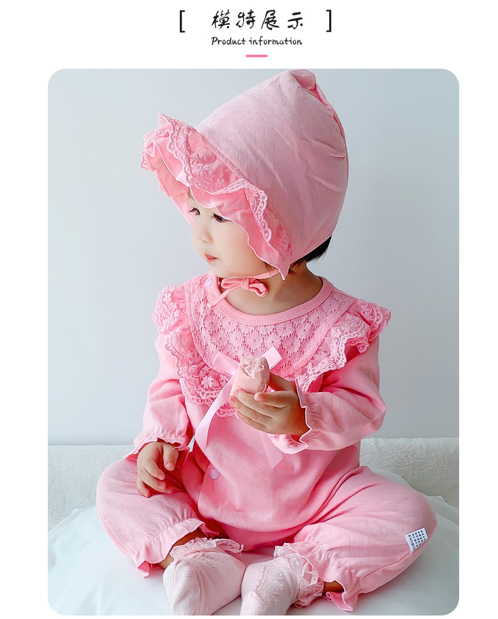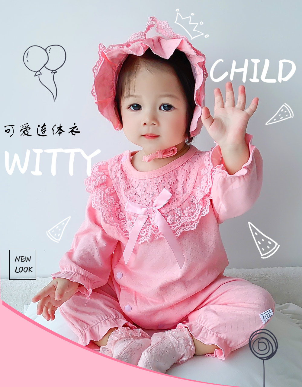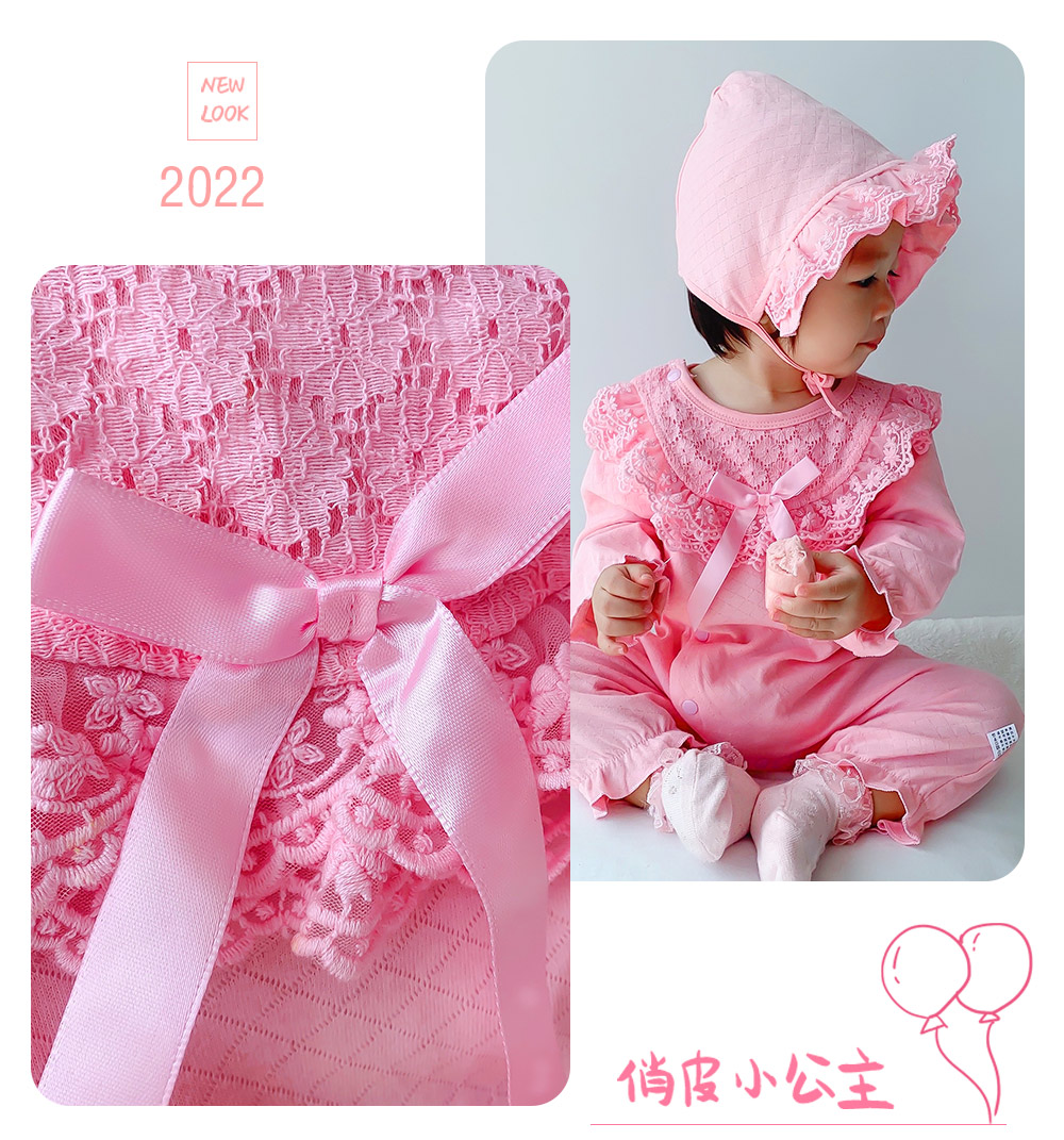 蕾丝轻覆粉衣裳,蝴蝶结藏着童真,这件连体衣,承包宝宝可爱~