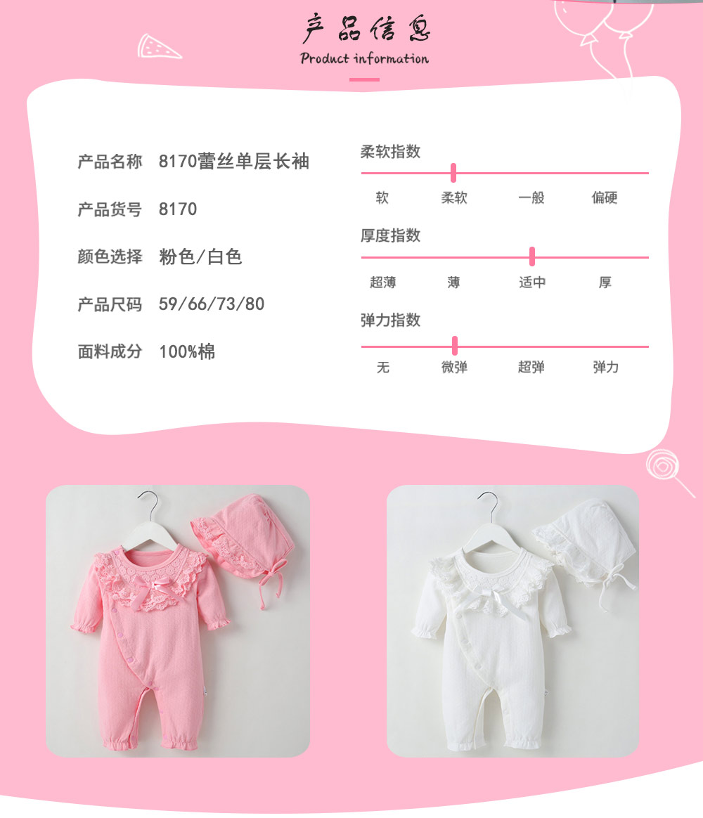 品牌:萌妈蓓 面料名称:棉 安全等级:A类 主面料成分:棉 主面料成分含量:100 适用性别:女 货源类别:现货 颜色:粉色 白色 款式:长爬