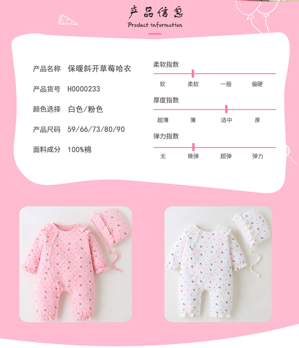保暖斜开草莓哈衣