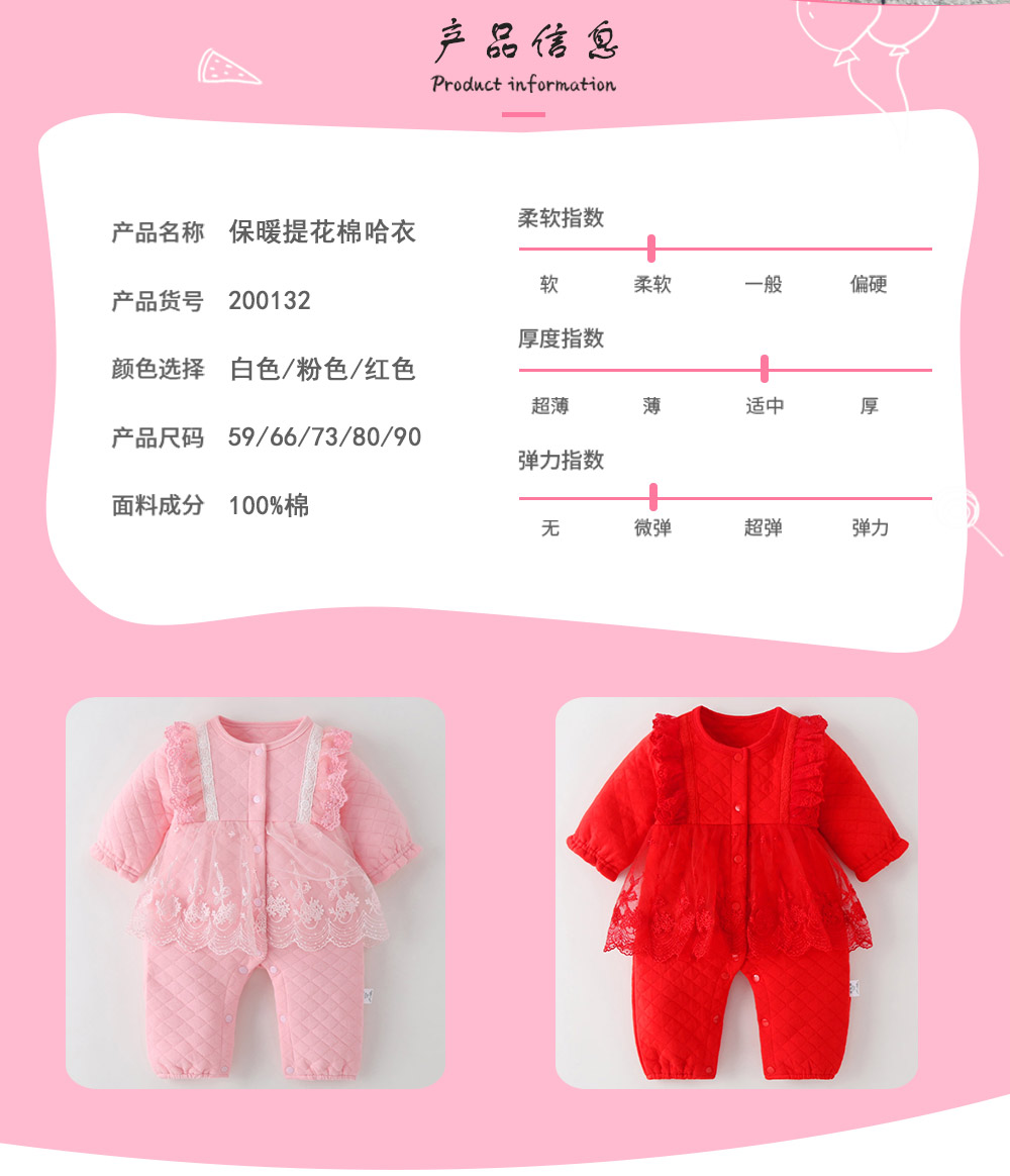 品牌:萌妈蓓 面料名称:棉 安全等级:A类 主面料成分:棉 主面料成分含量:100 适用性别:女 货源类别:现货 颜色:粉色 红色 款式:长爬