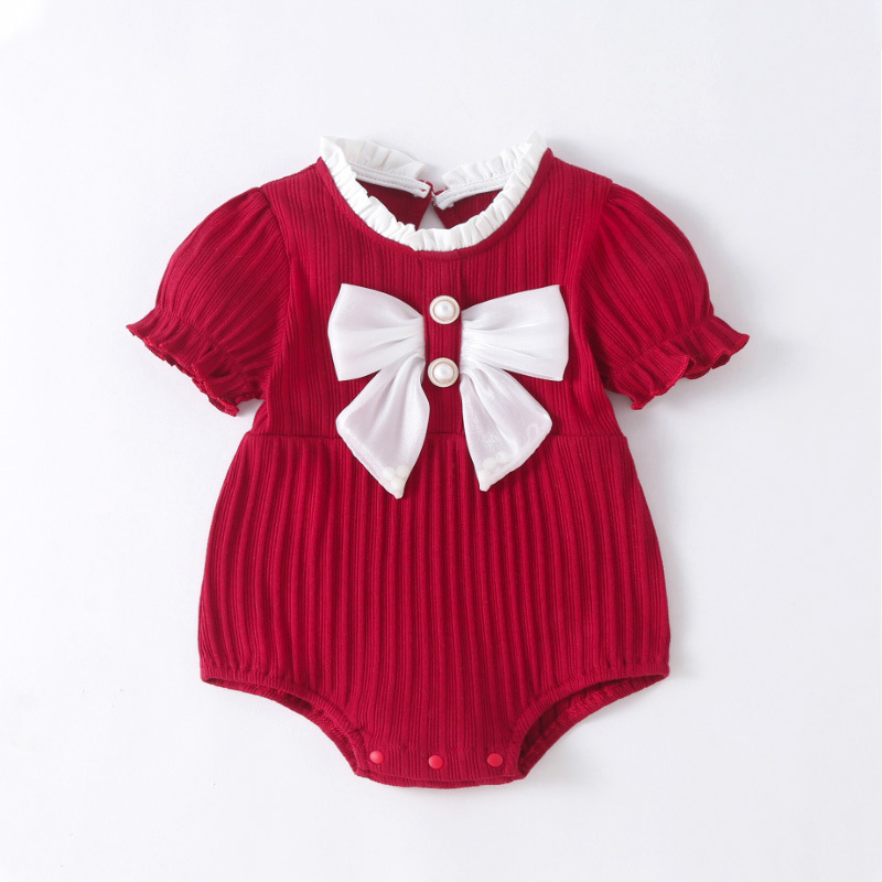 酒红色短袖小香风三角爬